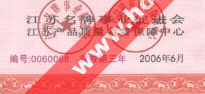 江蘇省優(yōu)質(zhì)產(chǎn)品榮譽證書