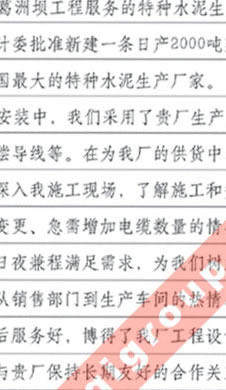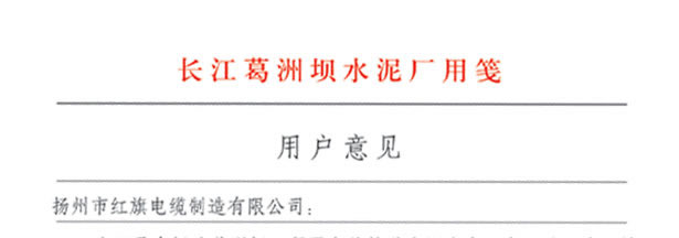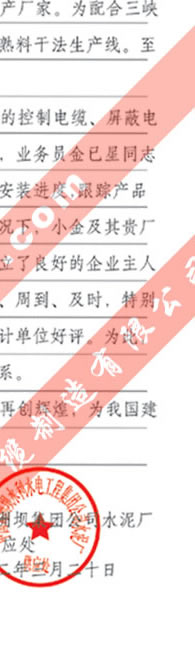長江葛洲壩水泥廠對我公司服務(wù)熱情、交貨及時、產(chǎn)品質(zhì)量好的評價