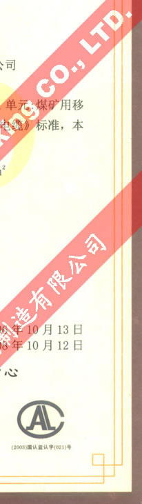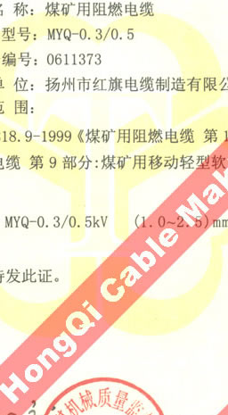 國家采煤機械質(zhì)量監(jiān)督檢驗中心檢驗合格證--煤礦用阻燃電纜(MYQ-0.3/0.5)